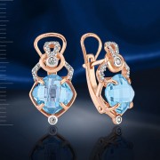 Очаровательные серьги из серебра 925 пробы с твёрдой позолотой, украшенные сверкающими фианитами и нанотурмалином.