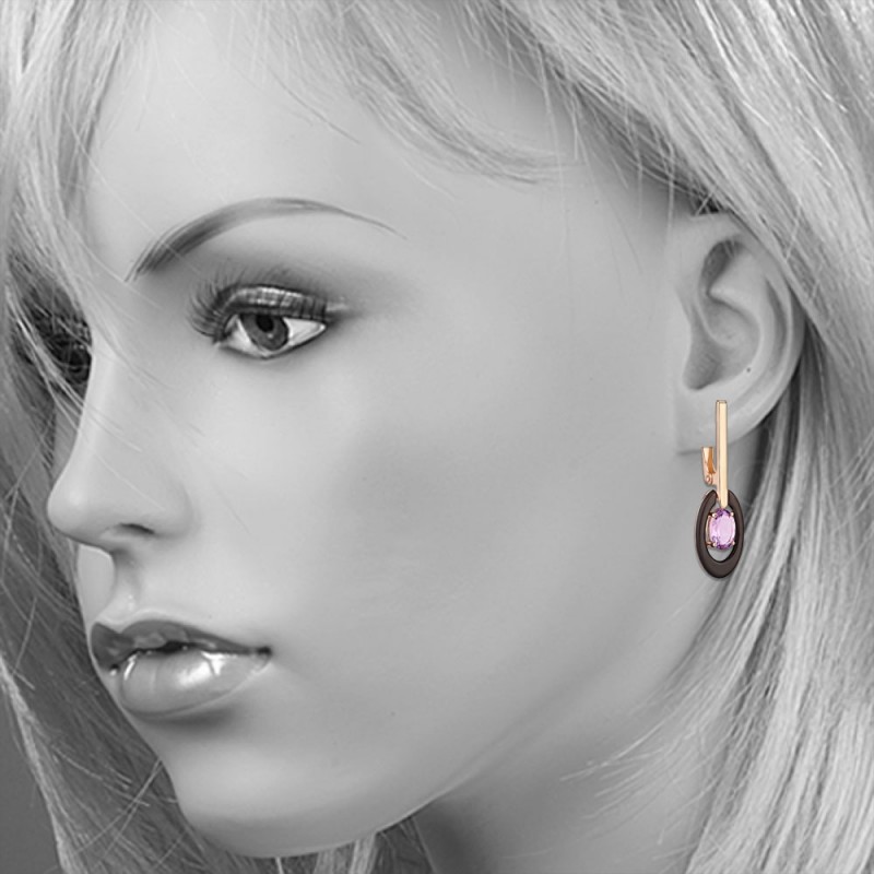 Charmante Ohrhänger aus Silber 925 vergoldet und mit Keramik beschichtet, mit Amethyst verziert.