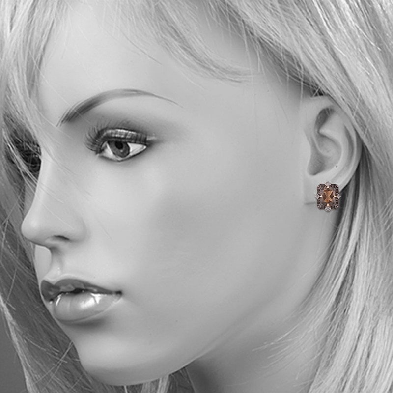 Elegante Ohrringe aus 925er Silber vergoldet, mit Zirkonia, Nanokristall und Rauchquarz verziert.