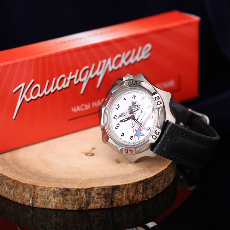 Die legendäre Uhr "Komandirskije" gilt als Symbol Russlands. Ihre Geschichte begann in der "Sowjetzeit", im Jahr 1965, als das Verteidigungsministerium der UdSSR der Chistopol Watch Factory den Auftrag erteilte, eine große Charge stoßfester und staubdichter Uhren für ihre Kommandanten herzustellen. Mit dem Zusammenbruch der Sowjetunion wuchs die Popularität der Marke nur noch. Und in unserer Zeit werden sie auch als Preis vergeben, sie werden vergeben, sie werden verliehen. So erhielt die Uhr des Vostok-Werks ihren Namen, der ihnen bis heute zugewiesen wurde. Genauigkeit und Zuverlässigkeit, Schönheit und Funktionalität haben den Test der Zeit ausspioniert und sind das Geheimnis ihrer Popularität. War früher das stoßfeste, staub- und wasserdurchlässige Gehäuse der Uhr hauptsächlich aus Edelstahl oder Messing gefertigt, handelt es sich jetzt hauptsächlich nur noch um Messing. Auf der Rückseite befindet sich eine Werksgravur, die sich je nach Baujahr unterscheiden kann.