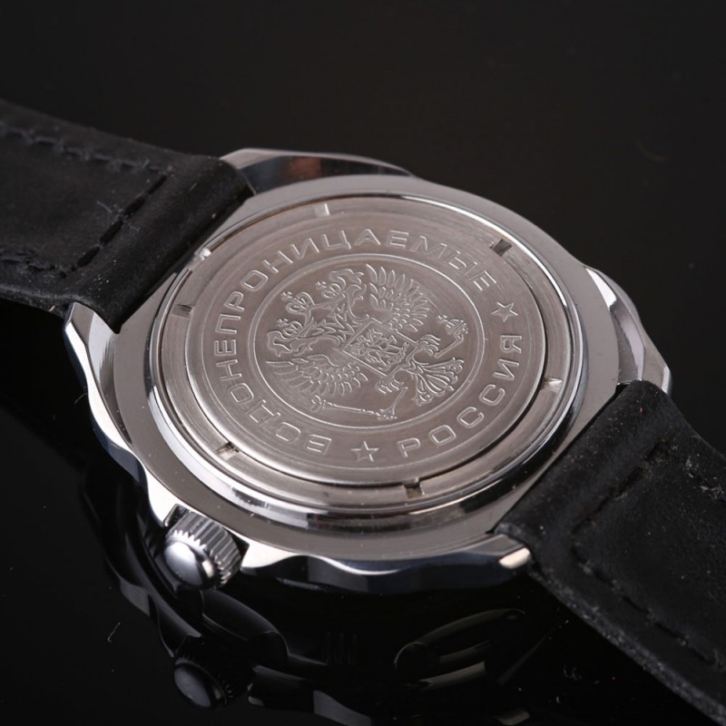Die legendäre Uhr "Komandirskije" gilt als Symbol Russlands. Ihre Geschichte begann in der "Sowjetzeit", im Jahr 1965, als das Verteidigungsministerium der UdSSR der Chistopol Watch Factory den Auftrag erteilte, eine große Charge stoßfester und staubdichter Uhren für ihre Kommandanten herzustellen. Mit dem Zusammenbruch der Sowjetunion wuchs die Popularität der Marke nur noch. Und in unserer Zeit werden sie auch als Preis vergeben, sie werden vergeben, sie werden verliehen. So erhielt die Uhr des Vostok-Werks ihren Namen, der ihnen bis heute zugewiesen wurde. Genauigkeit und Zuverlässigkeit, Schönheit und Funktionalität haben den Test der Zeit ausspioniert und sind das Geheimnis ihrer Popularität. War früher das stoßfeste, staub- und wasserdurchlässige Gehäuse der Uhr hauptsächlich aus Edelstahl oder Messing gefertigt, handelt es sich jetzt hauptsächlich nur noch um Messing. Auf der Rückseite befindet sich eine Werksgravur, die sich je nach Baujahr unterscheiden kann.