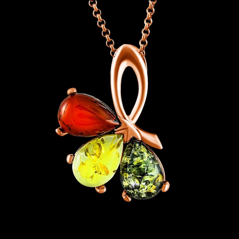 Ein charmanter Anhänger aus vergoldetem 925er Silber und einzigartigem Bernstein, mit diesem erstaunlichen "Stück der Sonne", das mit allen Grün- und Gelbtönen spielt.
