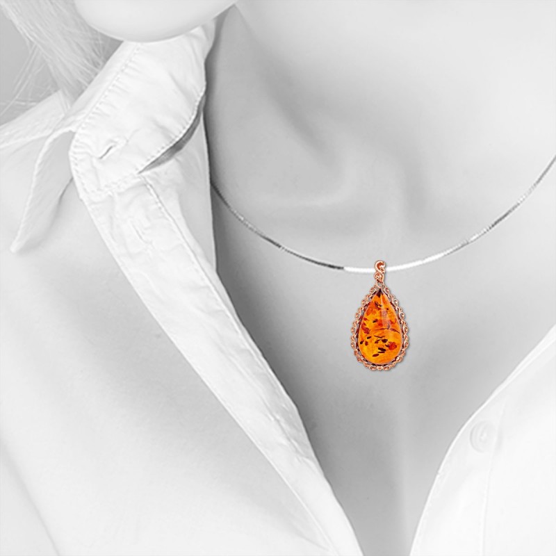 Ein charmanter Anhänger aus vergoldetem 925er Silber und einzigartigem Bernstein, mit diesem erstaunlichen "Stück der Sonne", das mit allen Gelbtönen spielt. Eine einzigartige Gelegenheit, Ihre Individualität zu betonen, das Bild von Weiblichkeit, Sonnenschein und Zärtlichkeit zu vermitteln.