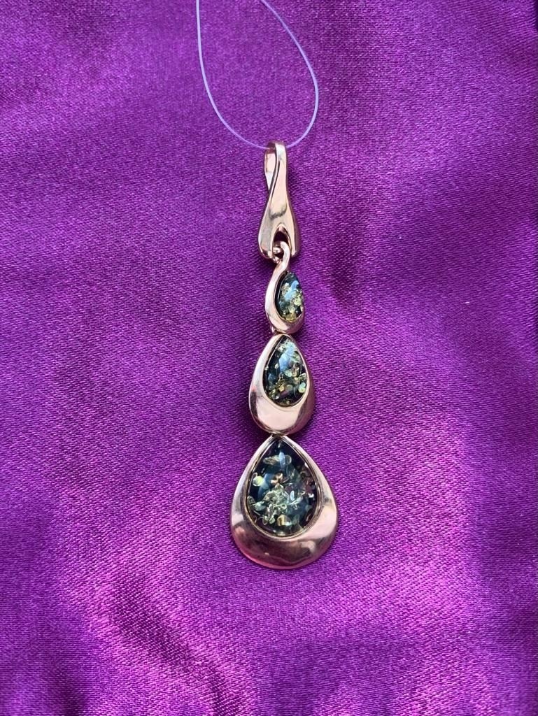 Очаровательная подвеска из позолоченного серебра 925 пробы с уникальным янтарём, с этим удивительным «кусочком солнца», играющим всеми оттенками зелёного цвета.