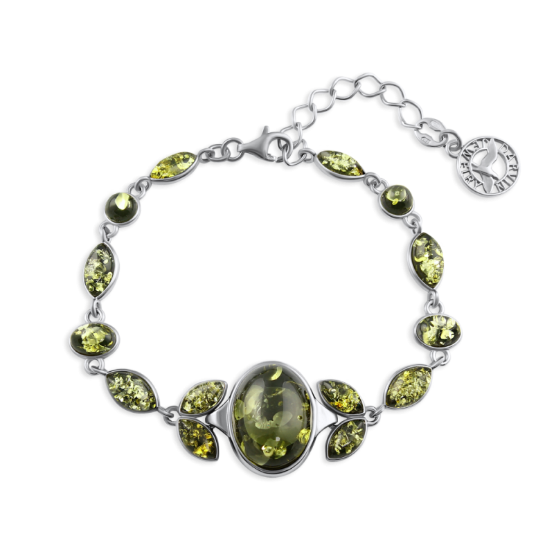 янтарь — это удивительная разновидность этого камня, красота которого подчёркивается глубоким цветом и выразительным блеском. Наиболее выгодно этот оттенок смотрится в серебре. Серебро выгодно оттеняет цвет янтаря, подчёркивает его структуру, добавляет дополнительное сияние. Серебряные украшения с зелёным