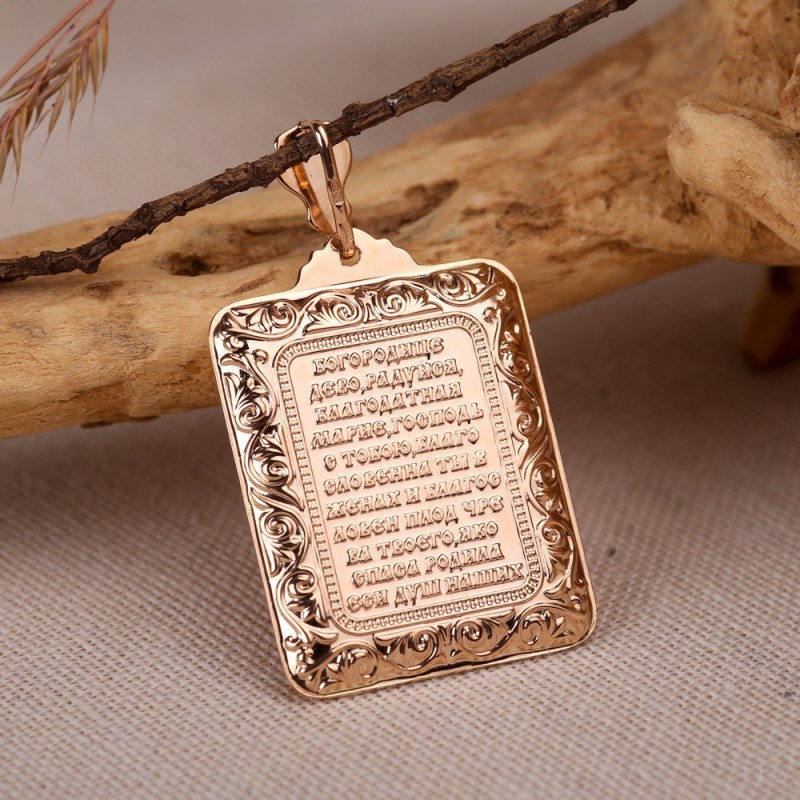 На обратной стороне подвески содержится следующий текст: "Богородице дево, радуйся, благодатная Марие, Господь с тобою, благословенна ты в женах и благословен плод чрева твоего, яко спаса родила вси душ наших".