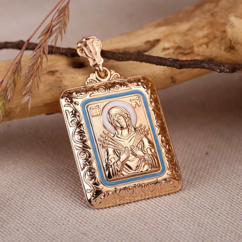 Подвеска-икона Богородицы "Семистрельная" из красного