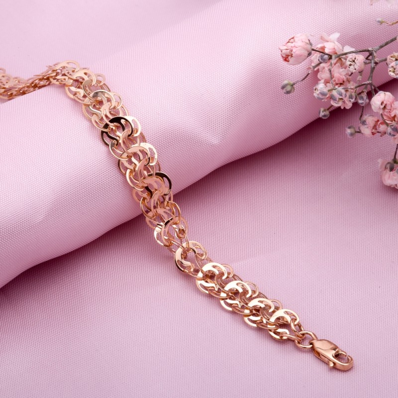 красного золота 585 пробы, выполненый в фантазийном плетении. Уникальная возможность подчеркнуть женственность и изящность женских рук.