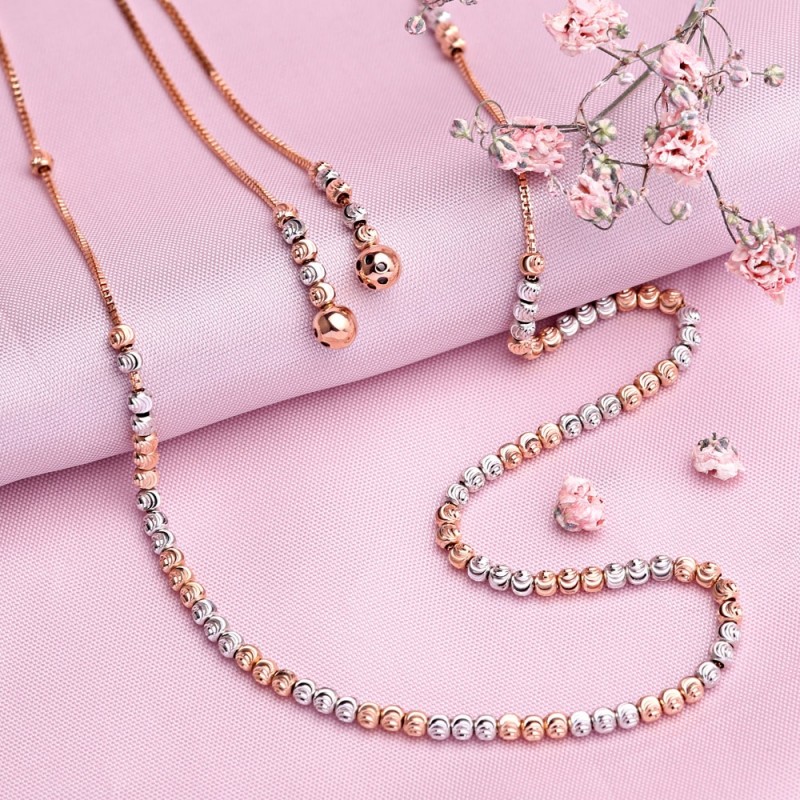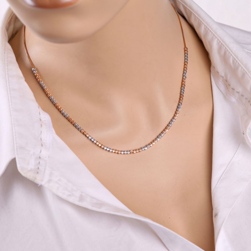 Eine charmante Kette aus 585er Weiß/Rotgold. Die Kettenglieder leuchten und funkeln in den Lichtstrahlen! Diamantschliff!