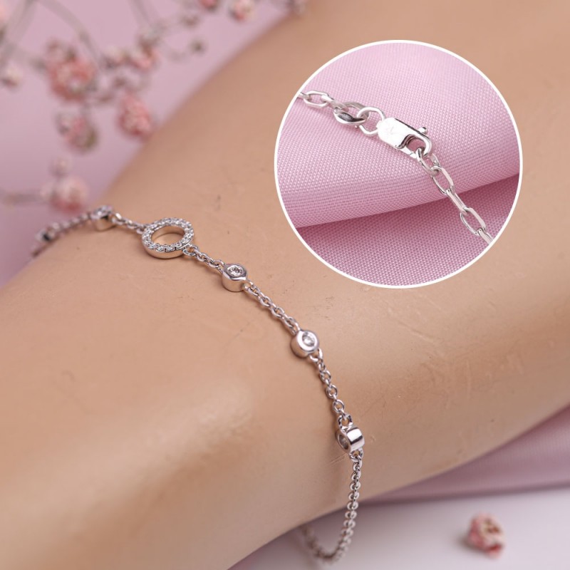 Die Armbandgröße ist zwischen 17 und 19 cm mit einer zusätzlichen Kette einstellbar.