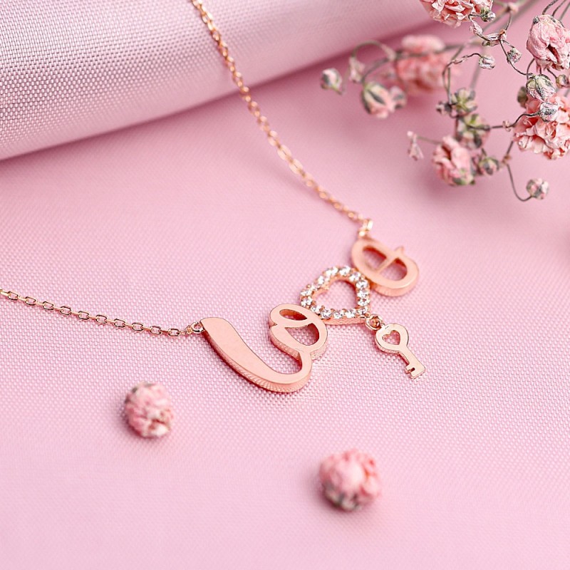 Zarte und romantische Halskette aus 585er Rotgold mit Einsatz von Kubikzirkonia. Ankerweberei