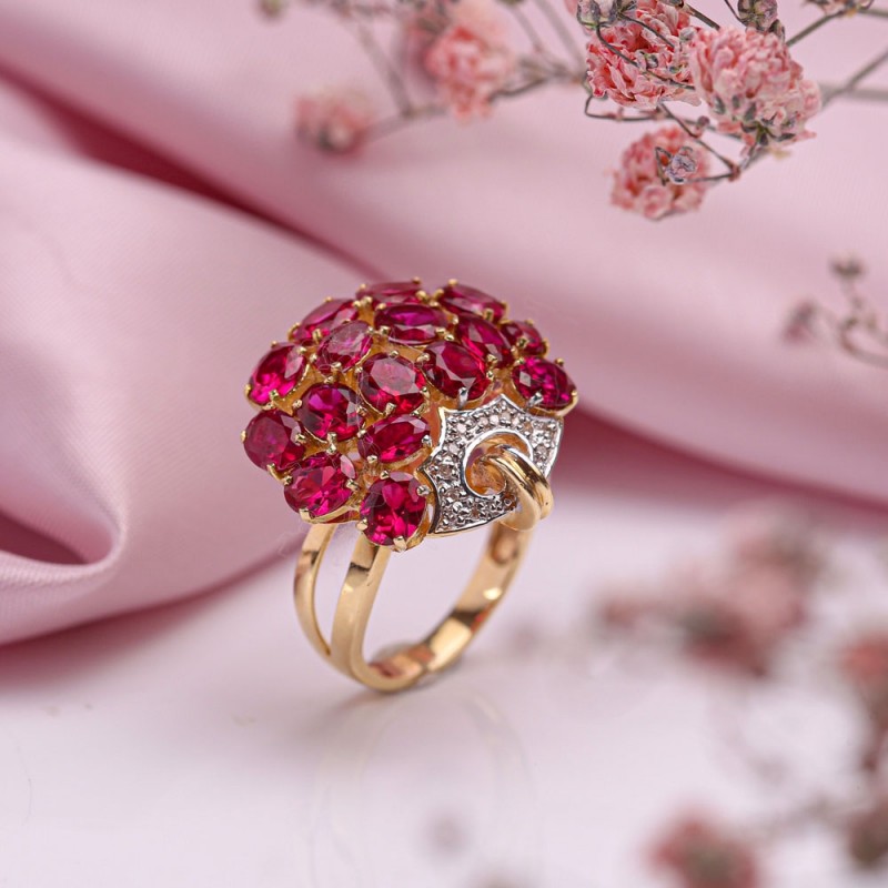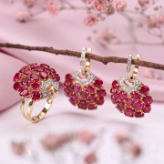 Rubin ist einer der teuersten Steine. In Bezug auf die Härte ist es nach Diamant an zweiter Stelle. Die Farben dieses Edelsteins reichen von leuchtendem Rot über Dunkelrot bis hin zu Lilarot.In Indien wurden sie schon vor unserer Zeit Könige der Edelsteine genannt und er wurde ein häufiger Begleiter von Königtum und Adel. Wein und Pflaumentöne von Rubin nehmen aktiv am Bild einer Frau teil. Sie betonen wie ein Konturstift die Tiefe des Blicks, die Leichtigkeit des Lächelns.