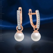 Rotgold, verziert mit Perlen und funkelnden Zirkonia! Die Ohrringe lassen sich transformieren und passen sowohl zu schicken als auch zu täglichen Garderobe.