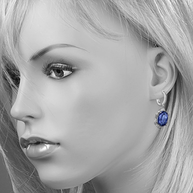 Elegante Weißgoldohrringe aus 585er Weißgold mit Diamanten und Saphir.
