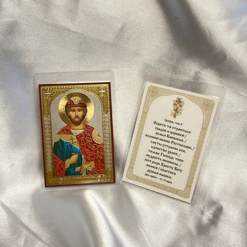 Taschenikone "Rostislav", laminiert. Gedenktag - 14. / 27. März