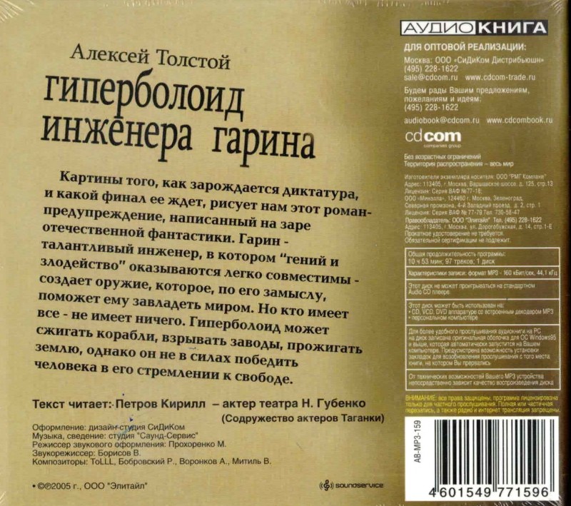 | Gefahren: | Russische Hörbücher sind nicht für Kinder unter 3 Jahren geeignet. Erstickungsgefahr durch verschluckte Kleinteile, Schnittgefahr durch scharfe Kanten. Vermeiden Sie den Kontakt mit Wasser, Chemikalien, Reinigungsmitteln oder Parfums/Kosmetika, um Verfärbungen und Schäden an der Oberfläche zu vermeiden. |