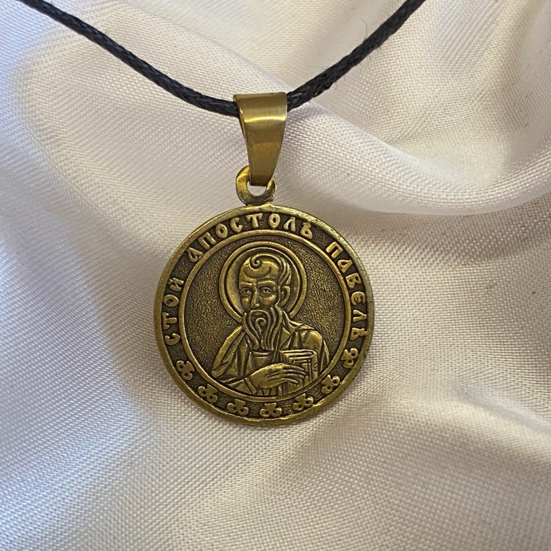 Bronzene Anhängerikone auf einer schwarzen starken Schnur.