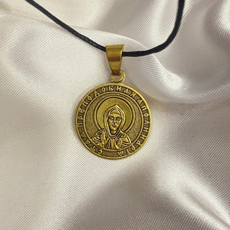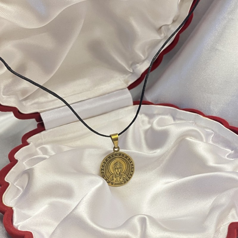 Bronzene Anhängerikone auf einer schwarzen starken Schnur.