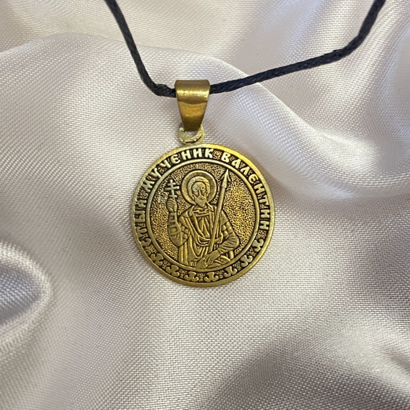 Bronzene Anhängerikone auf einer schwarzen starken Schnur.