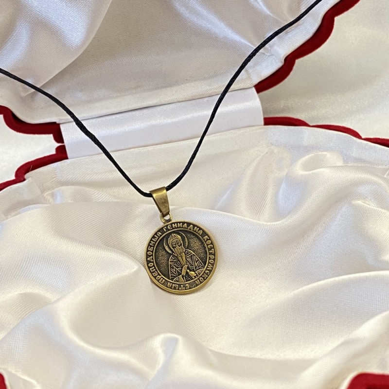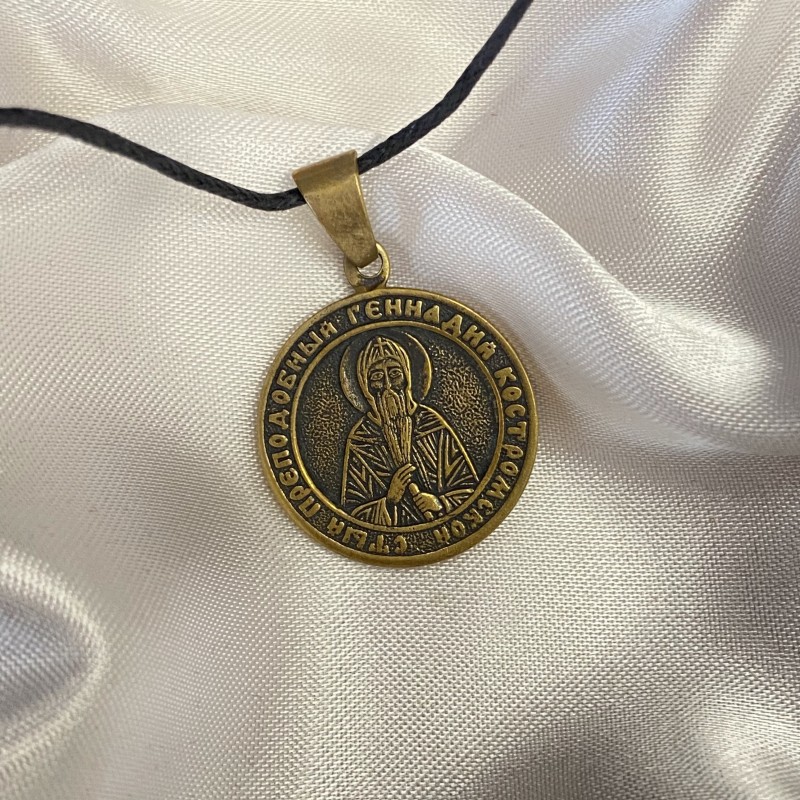 Bronzene Anhängerikone auf einer schwarzen starken Schnur.