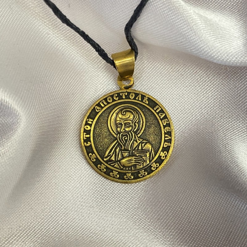 Bronzene Anhängerikone auf einer schwarzen starken Schnur.