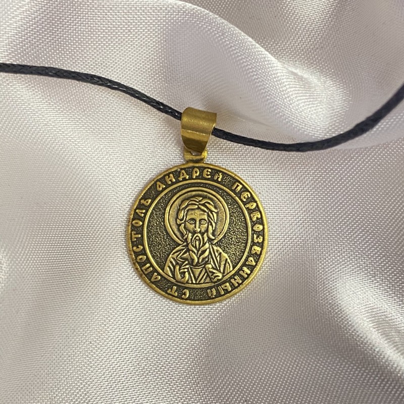 Bronzene Anhängerikone auf einer schwarzen starken Schnur.