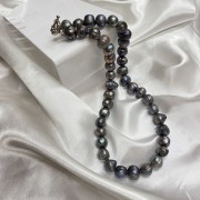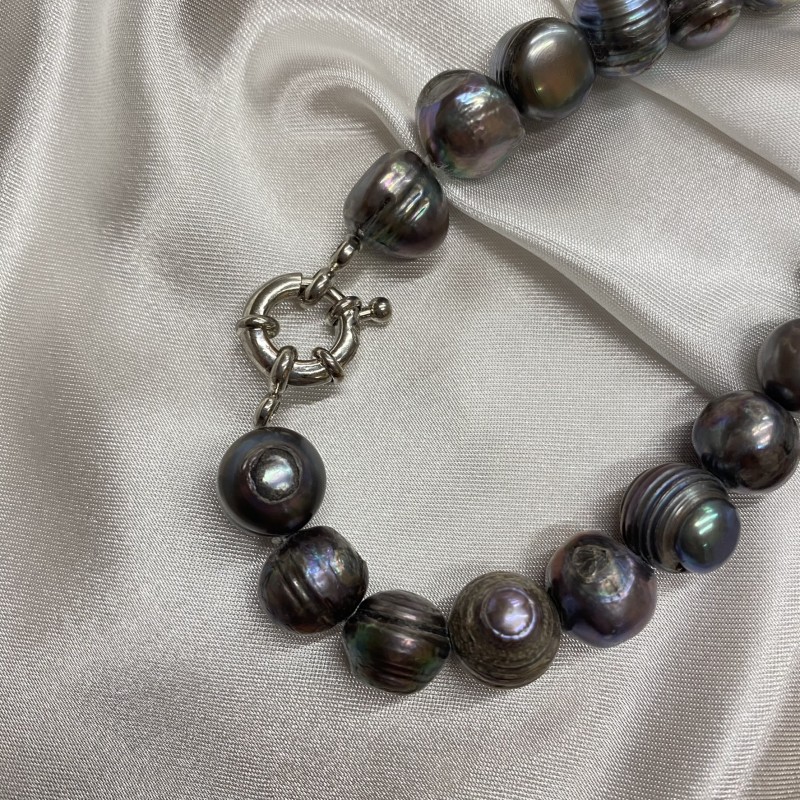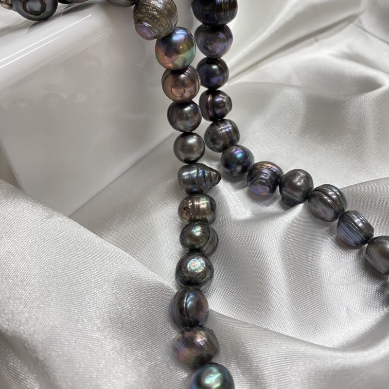 Eine ausgezeichnete schwarze Perlenkette ist ein ausgezeichnetes Geschenk für eine Frau jeden Alters und symbolisiert Respekt und Liebe. Die Brillanz von Schwarz mit Perlmutt-Tönung und großen Perlen verleiht dem Schmuck eine einzigartige Schönheit und ein Geheimnis.