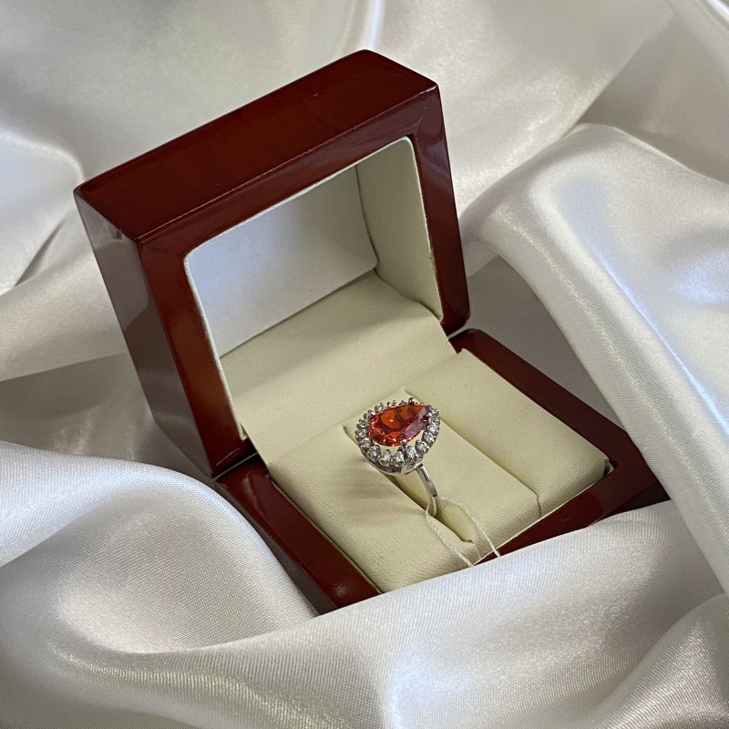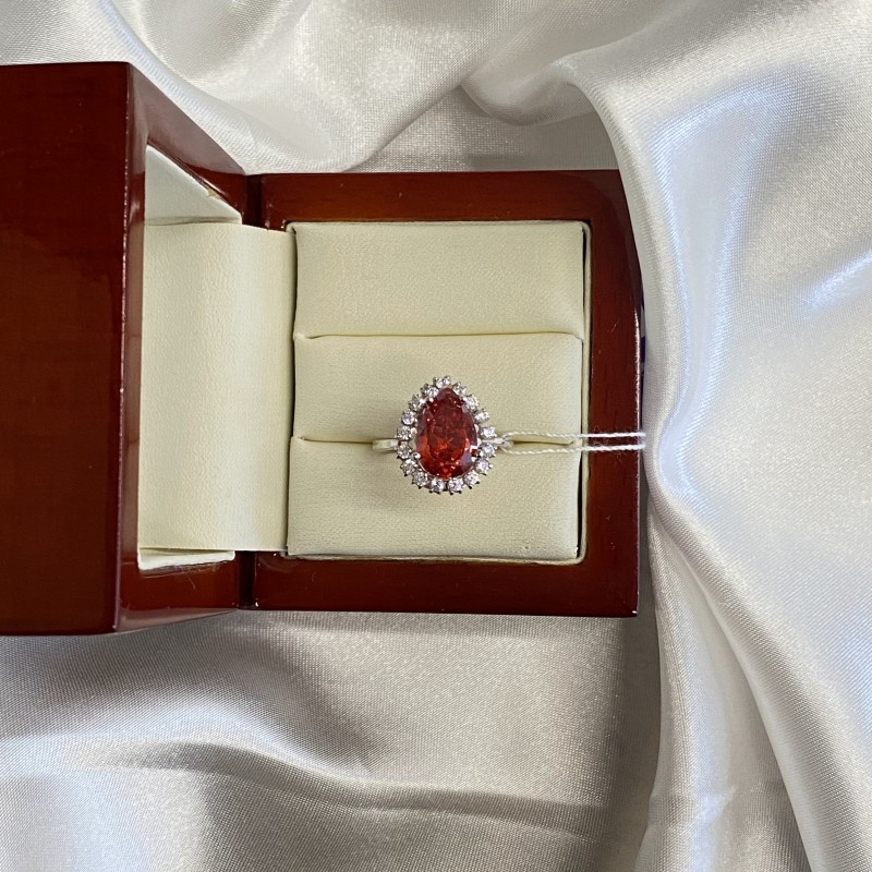 Einsatz: 1 Zirkonia Birne rot 12,0 x 8,0 mm; 17 Zirkonia Ø 1,7 mm