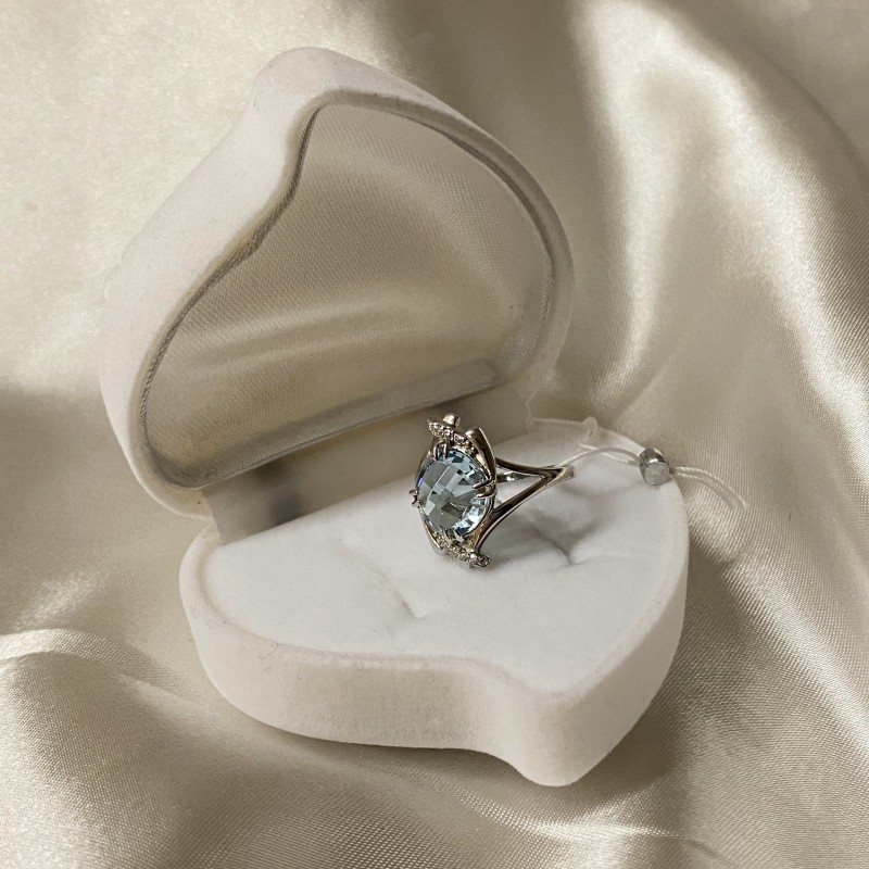 Herrlicher zarter Ring mit charmanten blauen Topas und Zirkonia in einem schönen Silberrahmen aus 925er Silber. Rhodiniert!