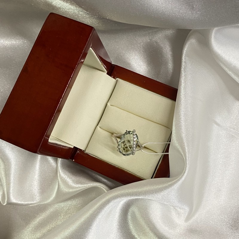 Herrlicher zarter Ring mit charmanten grünen Quarz und Zirkonia in einem schönen Silberrahmen aus 925er Silber. Rhodiniert!