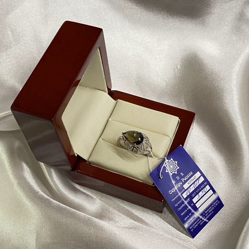 Rauсhquarz wurde wegen seines schönen Glanzes und wegen der ungewöhnlichen Farbe rauchig (rauch) genannt. Eine spezifische Eigenschaft von Rauchquarz, die es von anderen transparenten Quarzen unterscheidet, ist das Farbschema in Brauntönen. Besonders schön sind die Kristalle, die eine goldene Reflexion geben. Das Mineral zieht die Aufmerksamkeit auf sich. Es sieht spektakulär mit Diamant, Smaragd und Stufenschliff aus. Sehr origineller und ungewöhnlicher Schmuck, bei dem ungleichmäßig bemalter Rauchquarz eine Fantasieform mit einer polierten Oberfläche hat.