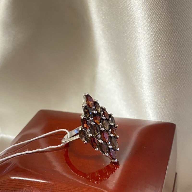 Herrlicher zarter Ring mit charmanten Rauchquarz und Granaten in einem schönen Silberrahmen aus 925er Silber. Rhodiniert!