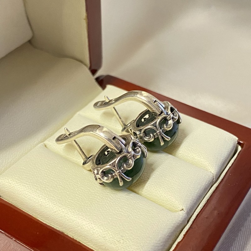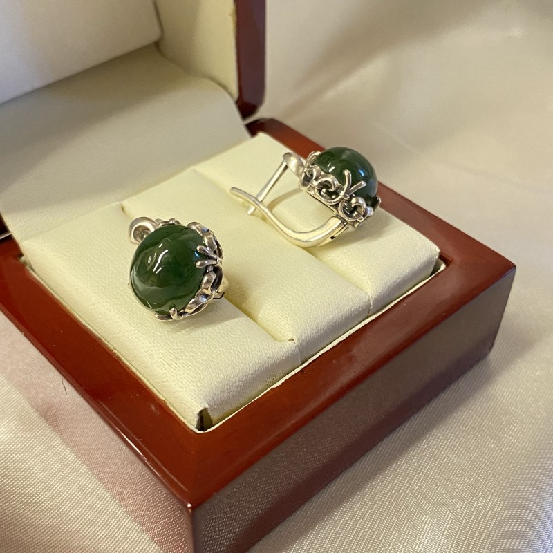 Wunderschöne Ohrringe aus 925er Silber mit Einsatz von charmanten Nephriten.