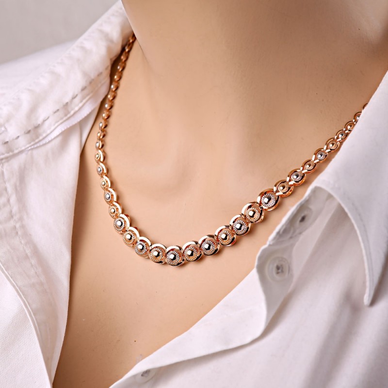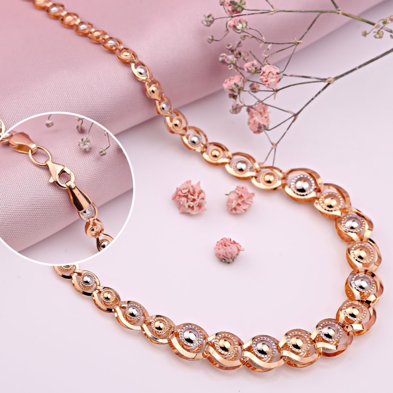 Rotgold für Hersteller liegt in seiner Stärke, Widerstandsfähigkeit gegen Lasten und Haltbarkeit. Diese Vorteile ermöglichen es Ihnen, leichten durchbrochenen Schmuck zu kreieren, ohne befürchten zu müssen, dass das Material schnell seine Form verliert oder geätzt wird.Schmuck aus rotem Material sieht toll aus, auch wenn er nicht von Edelsteinen instruiert wird. Solche Produkte eignen sich für jede Art von Haut, schmücken eine Frau jeden Alters und geben den Anschein von Raffinesse und Eleganz.