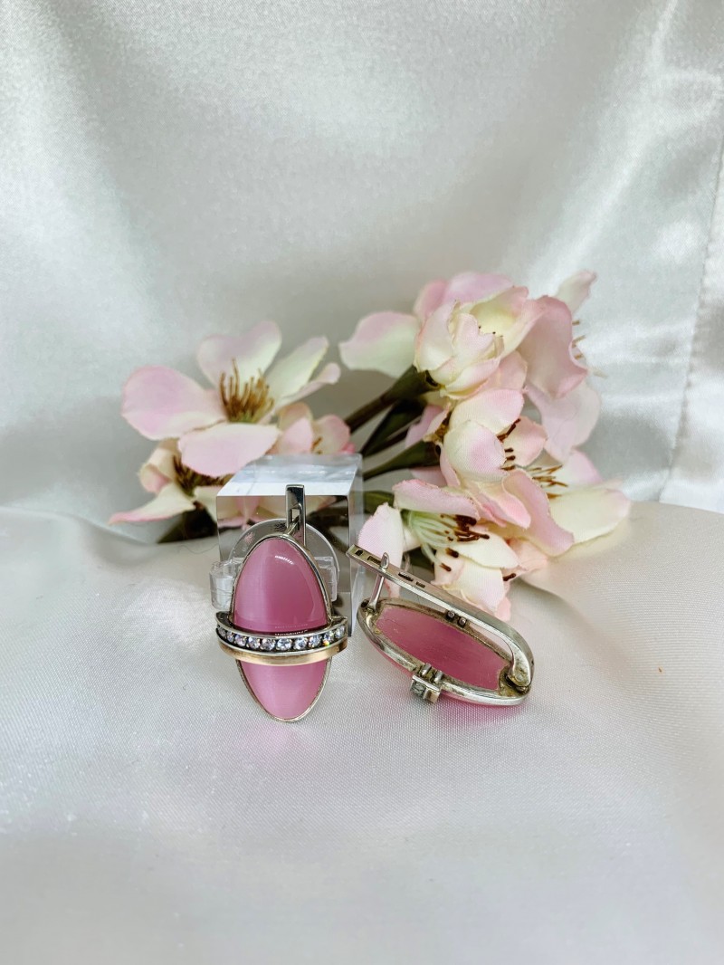 Ein entzückendes Set aus 875 Silber und 375 Gold mit Einsätzen aus exzellentem Ulexit und funkelnden Zirkonium! Die Kombination dieser beiden Edelmetalle, kombiniert mit bezaubernden Steinen unterschiedlicher Größe, verleiht dem Produkt ein einzigartiges Aussehen und fesselt das Auge. Ein solches Set wird die Zärtlichkeit, Weiblichkeit und den Charme seiner Herrin betonen!