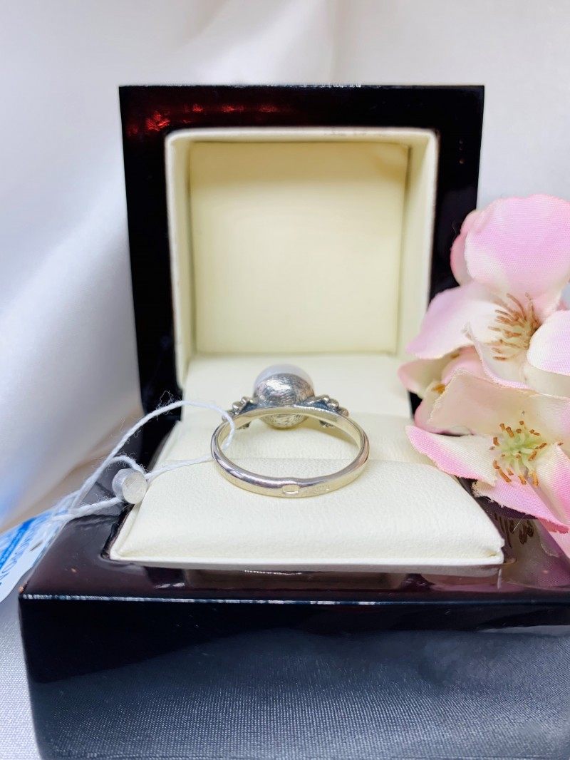 Entzückender zarter Ring mit bezaubernden natürlichen weißen Perlen. Der Ring sieht prägnant und stilvoll in einem wunderschönen Rahmen aus 925er Sterlingsilber aus und betont die Zartheit, den Charme und die natürliche Schönheit ihrer Hände!