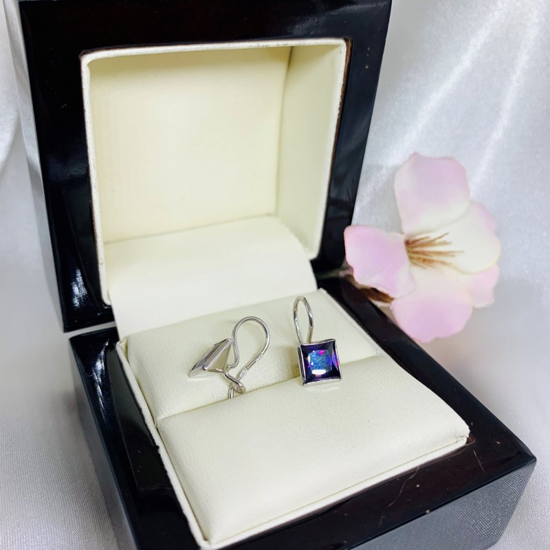 Wunderschöne Ohrringe aus 925er Sterlingsilber mit einem Einsatz aus bezaubernden Lavendel - Zirkonia. Rhodiniert! Diese Ohrringe werden Ihre kleine Prinzessin perfekt schmücken!