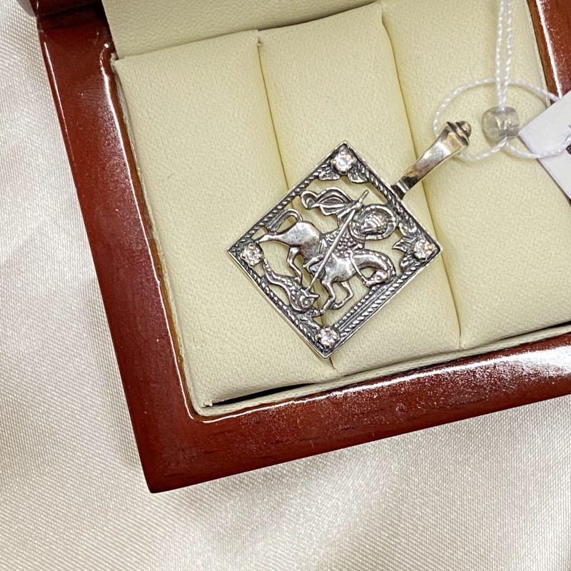 Подвеска-икона из чернёного серебра 925 пробы, со вставками