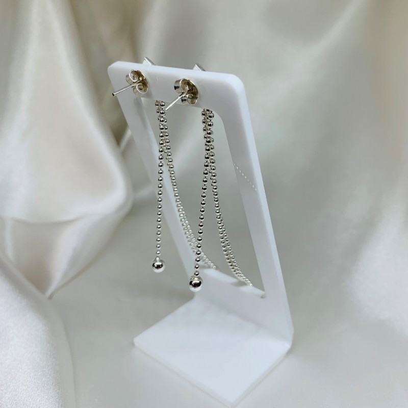 Шикарные, модные серьги-подвески с застёжкой "Пусеты". Серебро 925 пробы! Серебряные шарики воздушно висят на серебряных цепочках плетения "Перлина". Прекрасный подарок или возможность порадовать себя.
