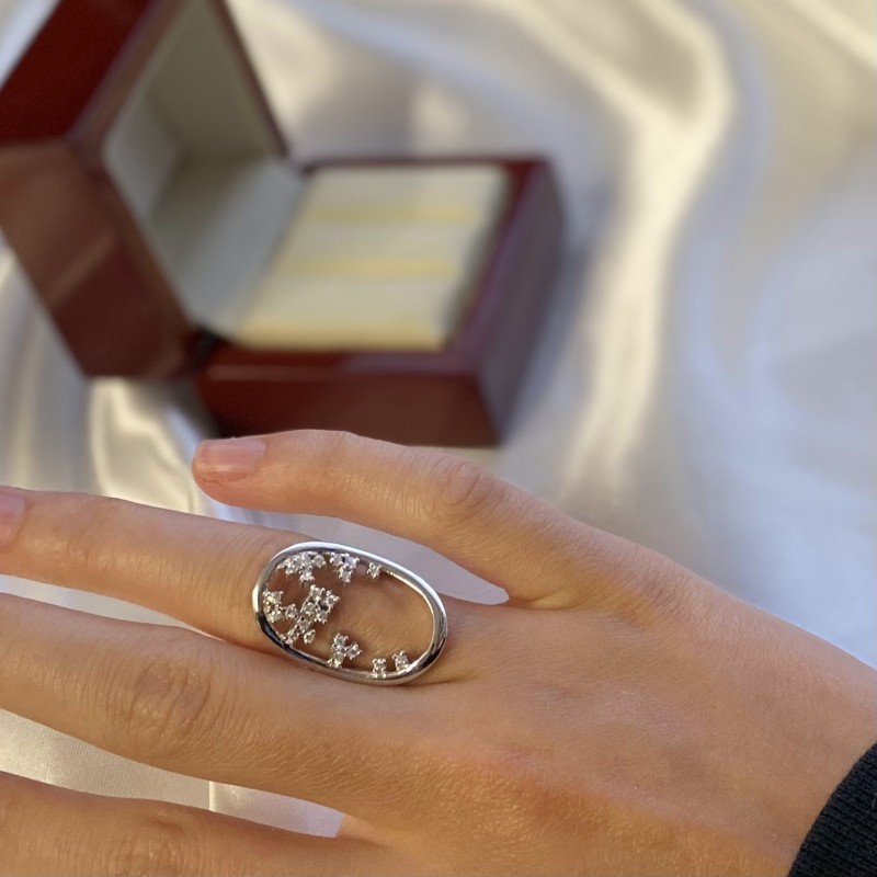 Herrlicher zarter Ring mit charmanten Zirkonia in einem schönen Silberrahmen aus 925er Silber. Ein wunderbares Geschenk für Ihre Geliebte, das ihre einzigartige Schönheit betonen wird!
