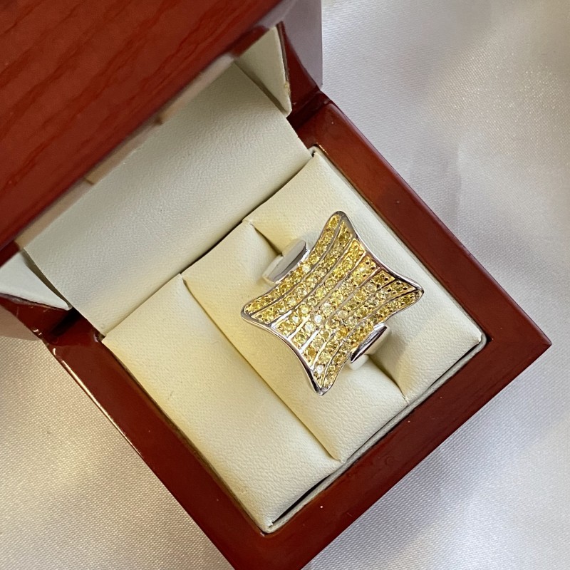 Entzückender, luxuriöser Ring mit charmanten funkelnden zitronenfarbenen Zirkonias. Prägnant und stilvoll wirkt der Ring in einer wunderschönen Fassung aus 925er Sterlingsilber. Es wird die Zartheit, den Charme und die natürliche Schönheit Ihrer Hände perfekt betonen! Das originelle Design des Rings wird Ihre Individualität widerspiegeln!