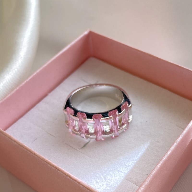 Romantischer, zarter Ring mit charmanten funkelnden großformatigen rosafarbenen Zirkonias. Der Ring wirkt prägnant und stilvoll in einem wunderschönen Rahmen aus 925er Sterlingsilber und schafft eine helle und lebendige Komposition. Es wird die Zartheit, den Charme und die natürliche Schönheit Ihrer Hände perfekt betonen! Das originelle Design des Rings wird Ihre Individualität widerspiegeln!
