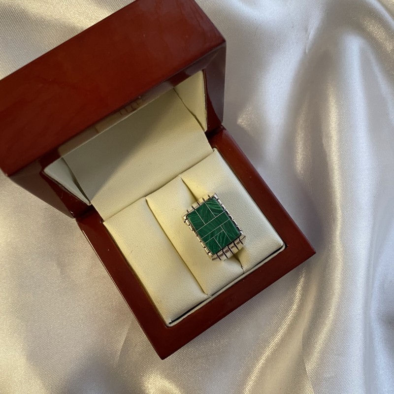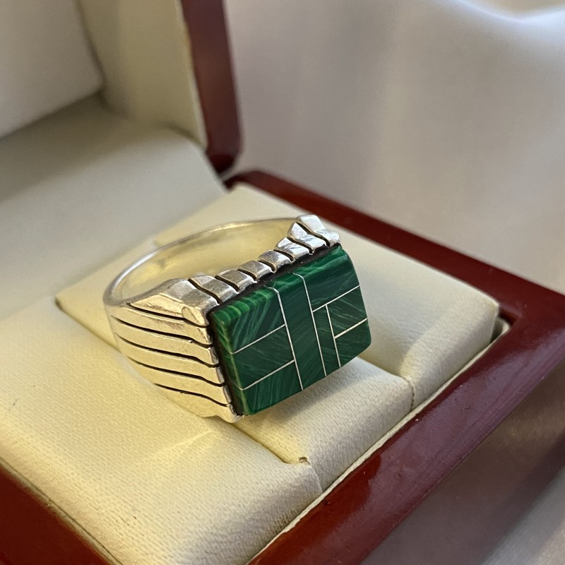 Herren Ring aus geschwärztem 925er Silber mit Malachit. Jeder Mann möchte seinen eigenen stilvollen Akzent haben, eine teure Sache, die den Status unterstreicht.