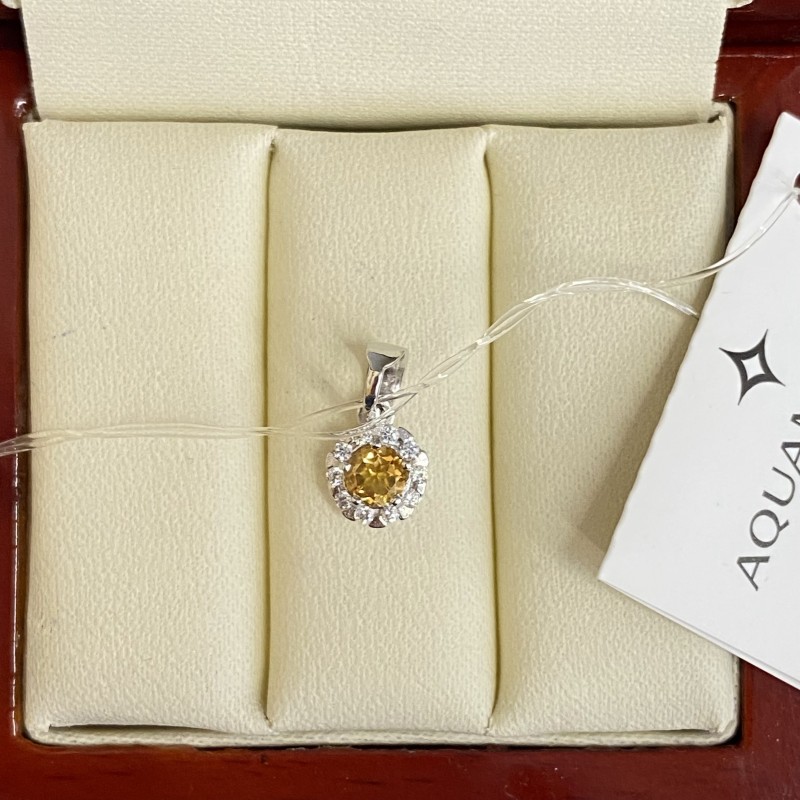 Очаровательная серебряная подвеска со вставками солнечного цитрина и сверкающих