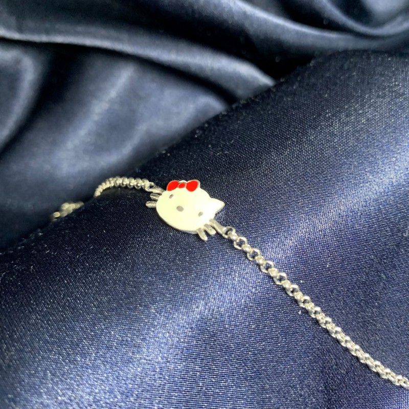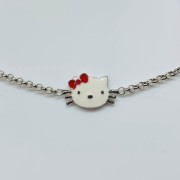 Kinderarmband aus 925er Sterlingsilber mit Einsatz der "Hello Kitty" Schnauze, überzogen mit mehrfarbiger Emaille (weiß, rot). Bandwebkette, auch bekannt als Belzer oder Rollo. Eine tolle Gelegenheit, Ihrer kleinen Prinzessin eine Freude zu bereiten.