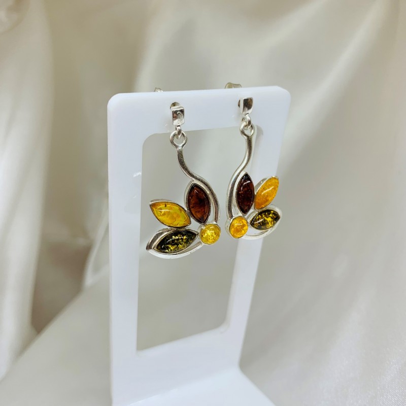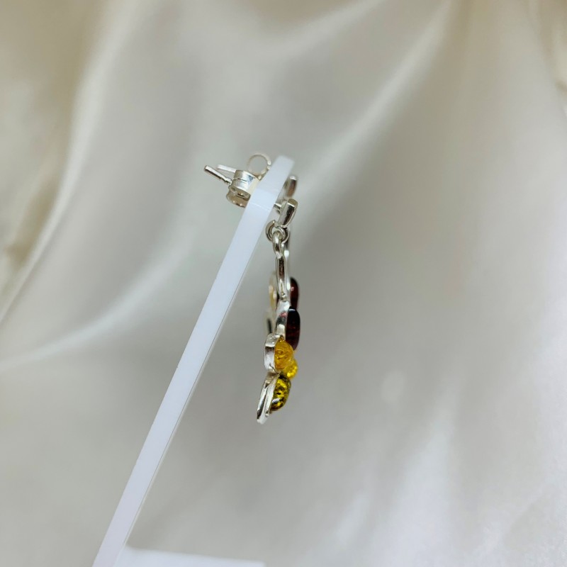 Bezaubernde Ohrhänger aus 925er Sterlingsilber mit Bernstein, diesem erstaunlichen „Stück Sonne“, das mit allen Rot-, Grün-, Honigtönen spielt. Eine einzigartige Gelegenheit, Ihre Individualität zu betonen, das Bild von Weiblichkeit, Sonnenschein und Zärtlichkeit zu vermitteln.
