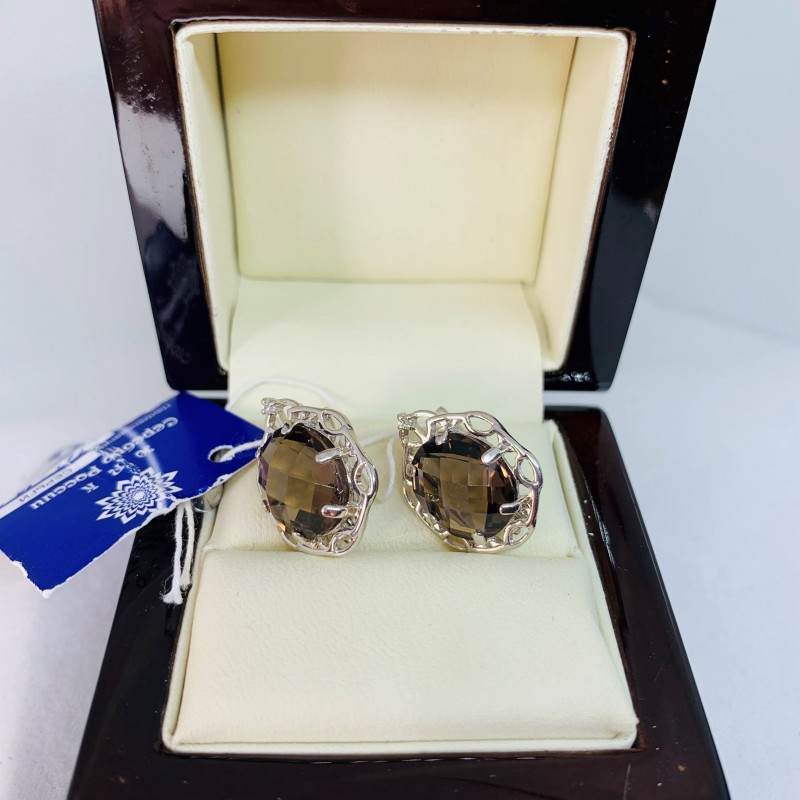 Rauсhquarz wurde wegen seines schönen Glanzes und wegen der ungewöhnlichen Farbe rauchig (rauch) genannt. Eine spezifische Eigenschaft von Rauchquarz, die es von anderen transparenten Quarzen unterscheidet, ist das Farbschema in Brauntönen. Besonders schön sind die Kristalle, die eine goldene Reflexion geben. Das Mineral zieht die Aufmerksamkeit auf sich. Es sieht spektakulär mit Diamant, Smaragd und Stufenschliff aus. Sehr origineller und ungewöhnlicher Schmuck, bei dem ungleichmäßig bemalter Rauchquarz eine Fantasieform mit einer polierten Oberfläche hat.