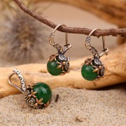 Handgefertigtes Set aus geschwärztem 925er Sterlingsilber mit einem Einsatz aus bezauberndem Chrysopras in einem Bronzerahmen! Frauen haben lange versucht, ihre Schönheit, Zerbrechlichkeit und ihren Charme mit Schmuck zu betonen. Orientalischer Damenschmuck hat viele Gesichter. Sie können sowohl Anmut und Bescheidenheit als auch Extravaganz des Bildes widerspiegeln. Schmuck im orientalischen Stil wurde traditionell von Juwelieren in Form von ganzen Sets hergestellt, darunter Armbänder, Ohrringe, Ringe und Halsketten. So erlangten schöne orientalische Frauen eine beeindruckende Helligkeit.