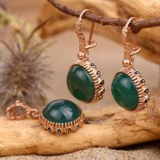Handgefertigtes Set aus 925er Sterlingsilber mit einem charmanten Chrysopras-Einsatz in einem Bronzerahmen, der mit einem geschwärzten Silbermuster verziert ist! Frauen haben lange versucht, ihre Schönheit, Zerbrechlichkeit und ihren Charme mit Schmuck zu betonen. Orientalischer Damenschmuck hat viele Gesichter. Sie können sowohl Anmut und Bescheidenheit als auch Extravaganz des Bildes widerspiegeln. Schmuck im orientalischen Stil wurde traditionell von Juwelieren in Form von ganzen Sets hergestellt, darunter Armbänder, Ohrringe, Ringe und Halsketten. So erlangten schöne orientalische Frauen eine beeindruckende Helligkeit.