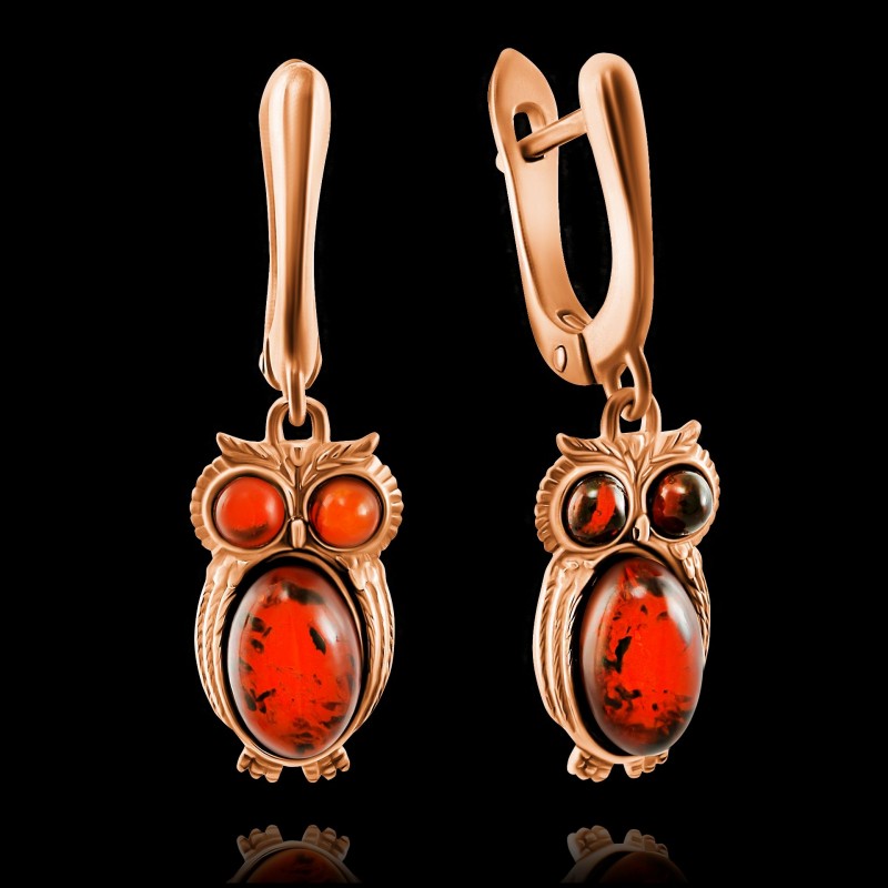 Vergoldete Silberohrhaenger "Bernsteinuhu"